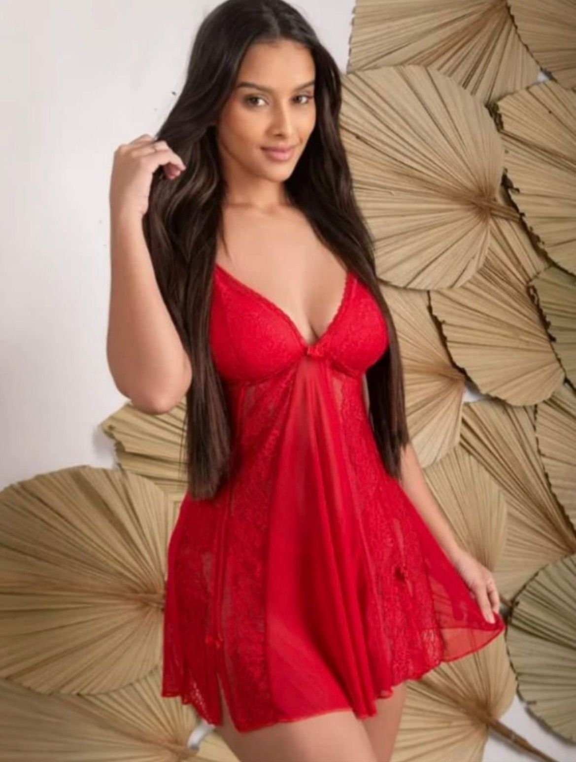 Confeccionada em tule leve e renda delicada, ela envolve o corpo com sutileza, valorizando as curvas e transmitindo pura feminilidade.